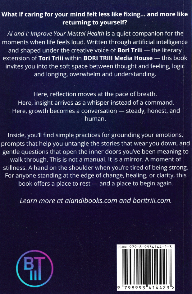 AI and I™: Improve Your Mental Health is not a replacement for therapy, nor is it a promise of instant clarity. It is a steady companion — a reflective guide designed to help you slow down, understand your inner landscape, and respond to your thoughts and emotions with greater awareness.